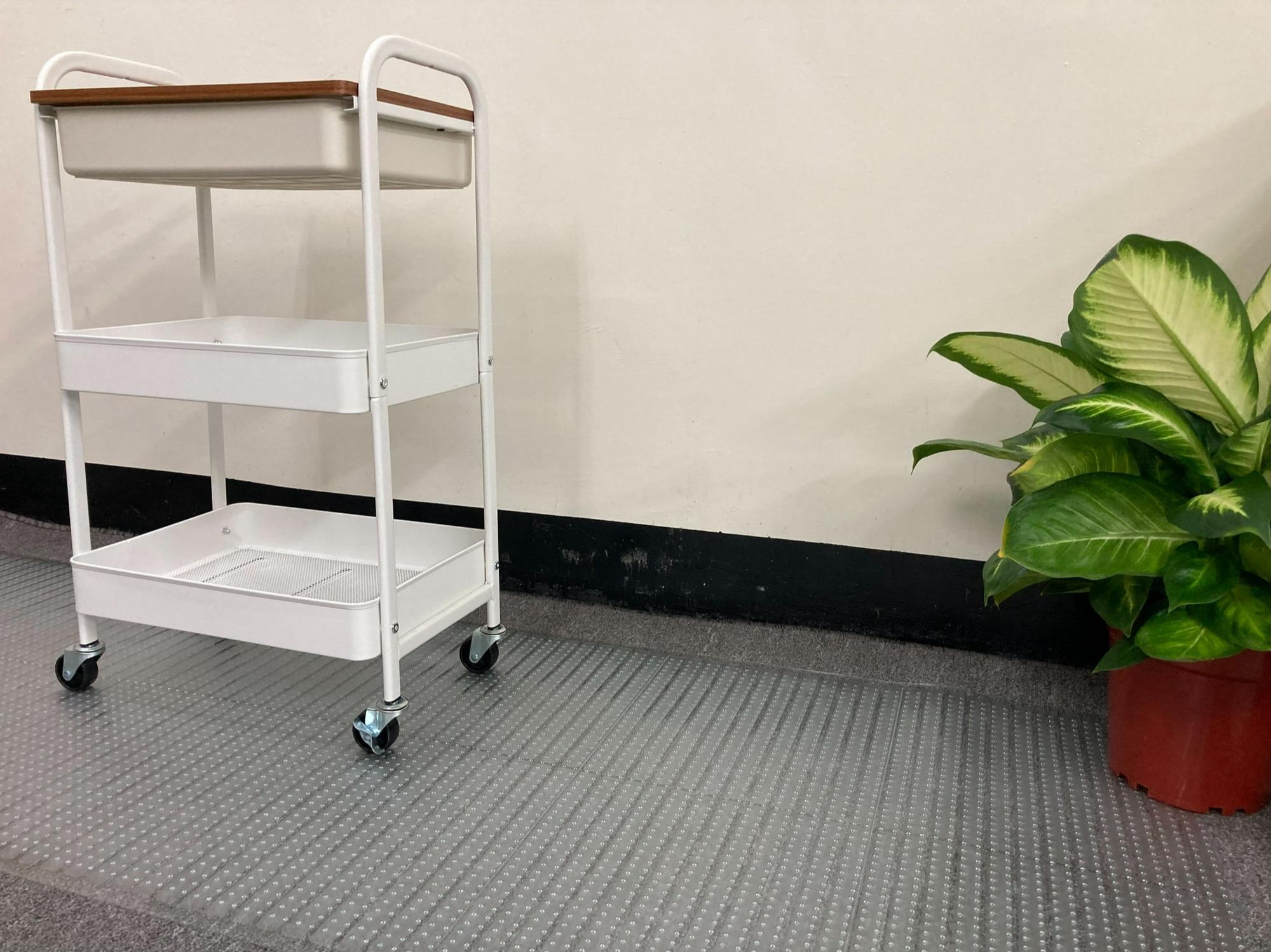 The underside features raised PVC grippers that anchor securely into low-pile carpets, minimizing movement even in high-traffic areas.