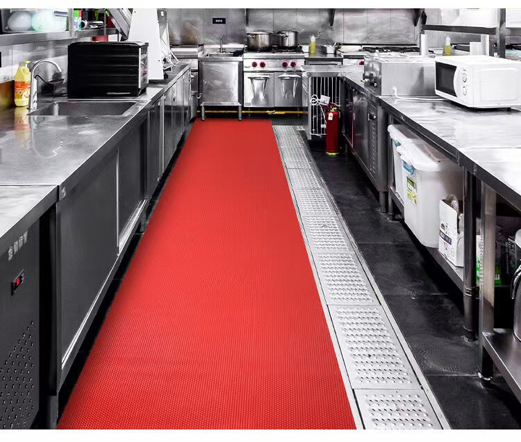 In manufacturing workshops, garages, and oily work cells, the mat provides a durable, slip-resistant surface that protects workers from slips and fatigue. Its tough PVC construction resists abrasion, grease, and chemicals, while the drainage channels help maintain a clean and dry workspace — improving both safety and productivity.